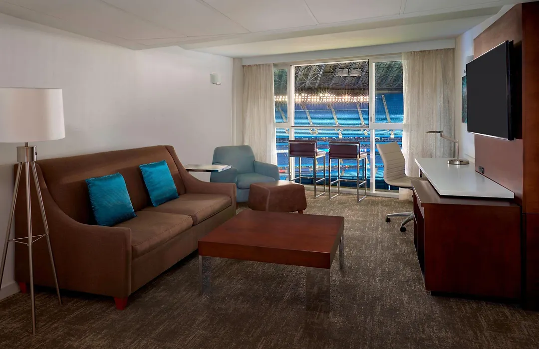 L'hotel Marriott City Centre Toronto dispone di 280 camere dotate di una TV a schermo piatto con canali satellitari, nonché di opzioni di self-catering come servizi per la preparazione di tè/caffè. Offrono dei bagni dotati di un bagno con WC separato e una doccia e asciugacapelli e teli da bagno. Alcune camere hanno viste sullo stadio.